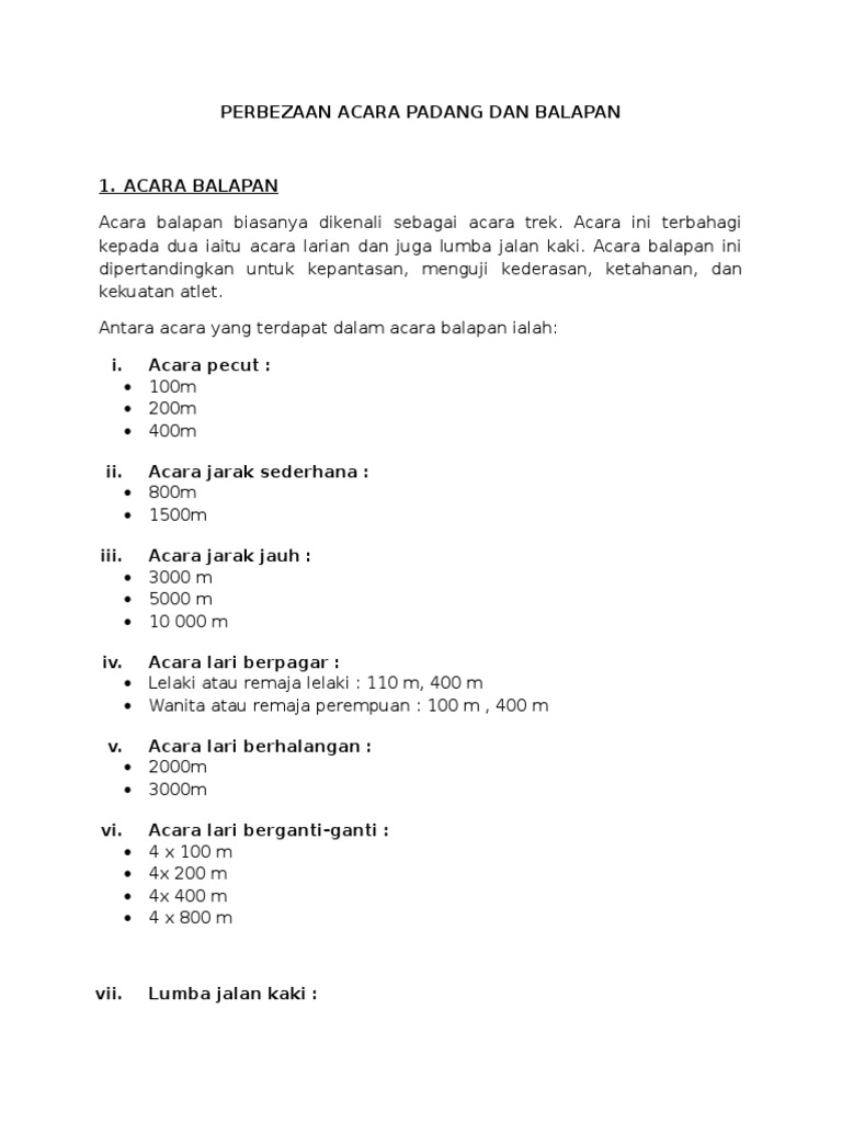 Perbezaan Acara Padang Dan Balapan Pdf